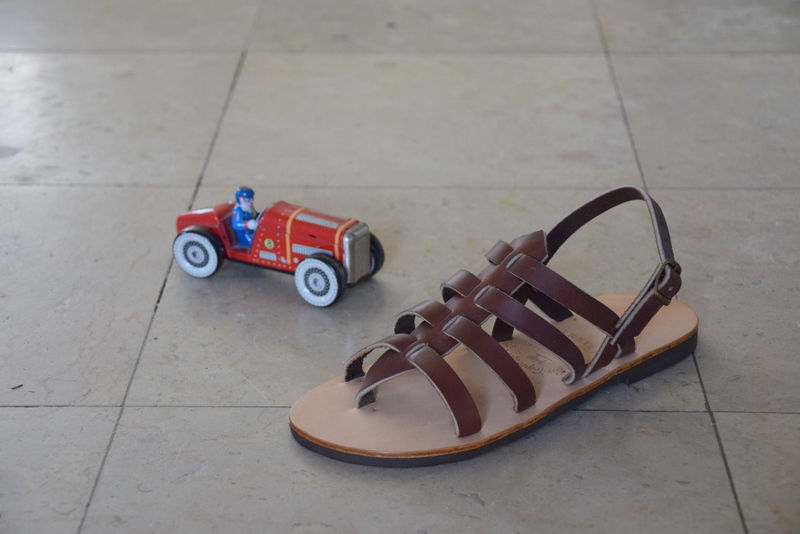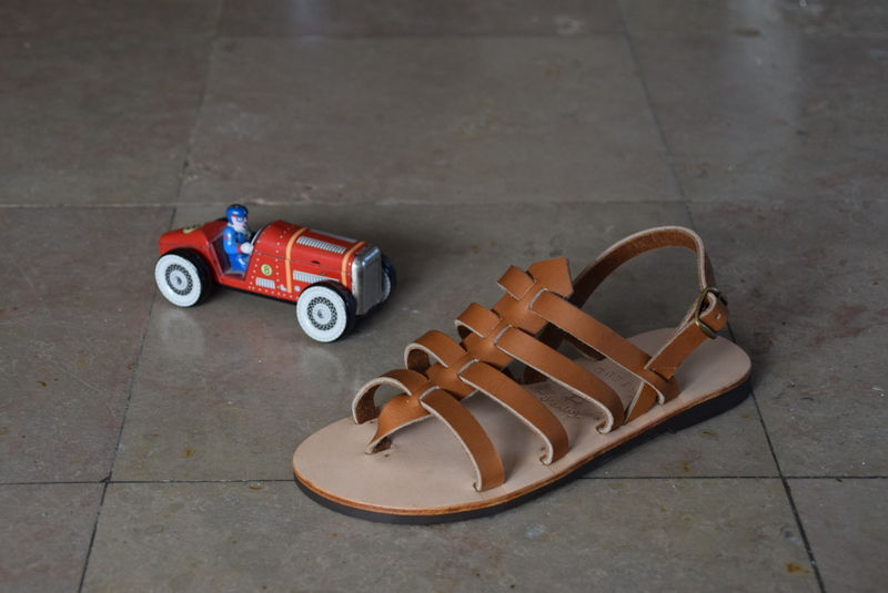 Pour les garçons, 4 lanières plus larges et une boucle bronze.
